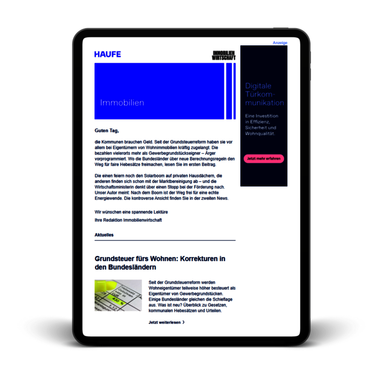 Das Haufe Themenportal für die Immobilien- und Wohnungswirtschaft bietet schnellen und bequemen Zugang zu allen top-aktuellen