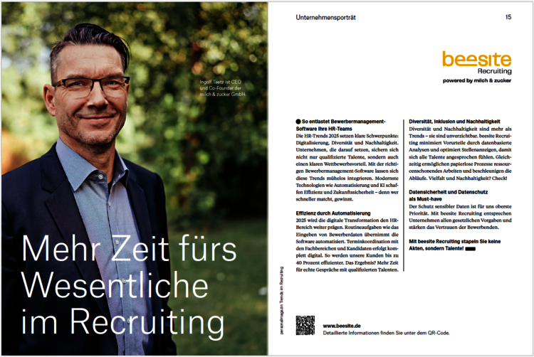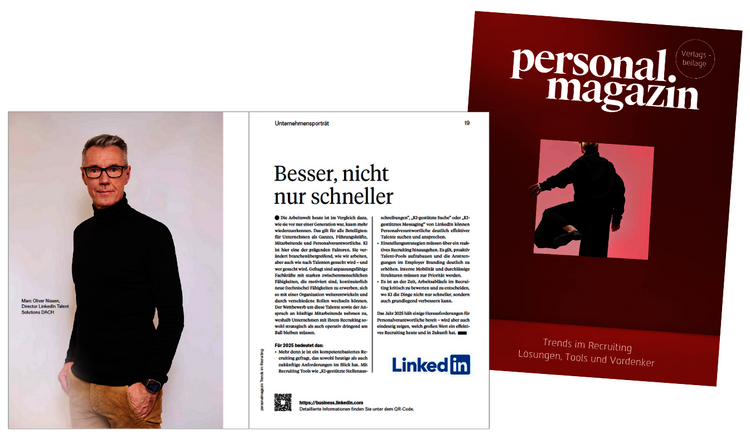 Wie sieht erfolgreiches Recruiting heute aus – und was erwartet uns morgen? Künstliche Intelligenz (KI), Automatisierung und datengetriebenes Bewerbermanagement verändern die Suche nach Talenten grundlegend. Gleichzeitig gewinnen Social Media als Plattform für Employer Branding und die direkte Ansprache von Kandidat:innen immer mehr an Bedeutung. Auch betriebliche Benefits rücken stärker in den Fokus, um sich im Wettbewerb um die besten Köpfe zu behaupten. Unser Special „Trends im Recruiting“ beleuchtet aktuelle Entwicklungen, zeigt Best Practices auf und bietet Inspiration von Vordenkern sowie Anbietern smarter Lösungen.